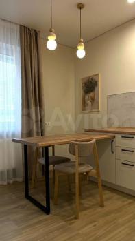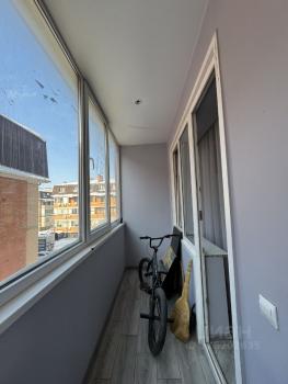 Есть вся необходимая мебель и бытовая техника для комфортного проживания. Лоджия с витражным остеклением совмещена с кухней, прекрасный вид на город. Теплый пол, турник и шторы блэкаут.