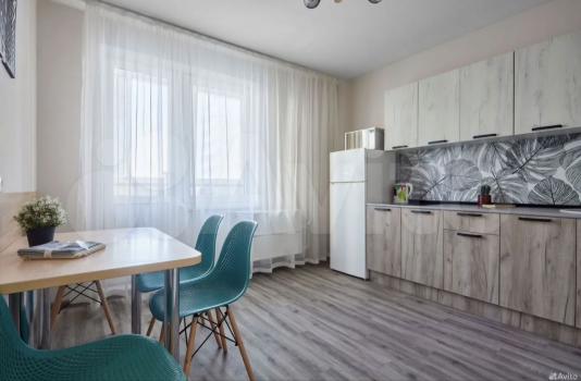 В квартире присутствует кухонный гарнитур, стол, стулья, варочная панель, духовой шкаф, вытяжка, холодильник, чайник, микроволновая печь, стиральная машинка.