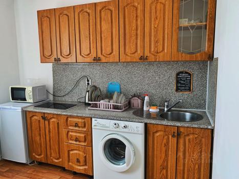 санузел - совмещённый, мебель - кухня, хранение одежды, спальные места, кондиционер, холодильник, микроволновка, стиральная машина, посудомоечная машина, водонагреватель, телевизор.