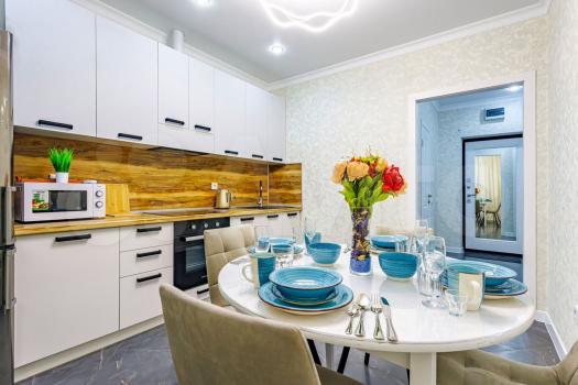В квартире для комфортного пребывания вы можете найти: свежее белье, чистую посуду, туалетные принадлежности, свежие полотенца, удобные подушки, современная бытовая техника, сушилка для белья и электроника, чай, сахар, специи, мыло, шампунь, бальзам и гель для душа предоставляются