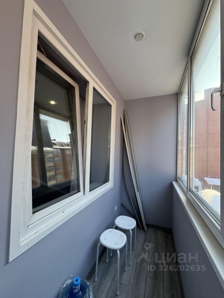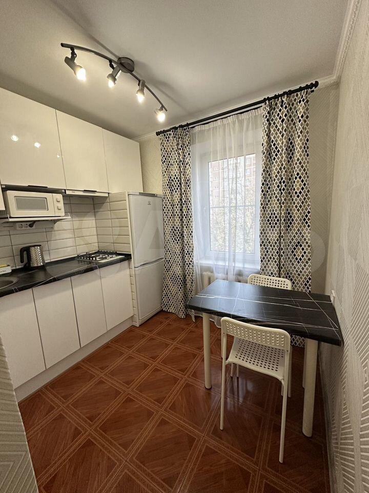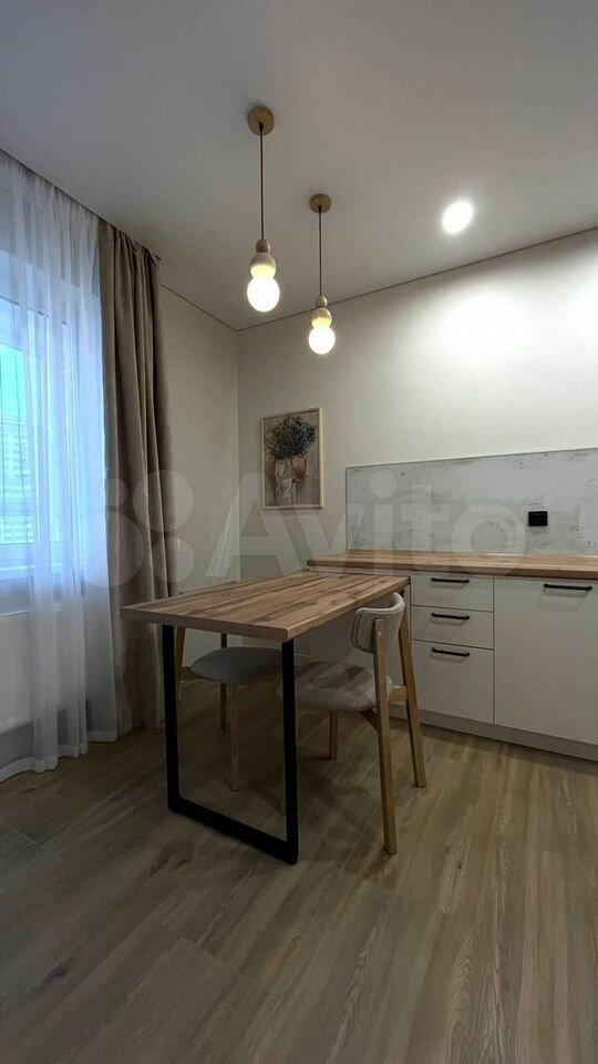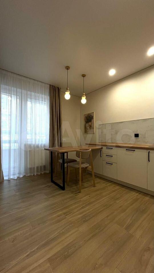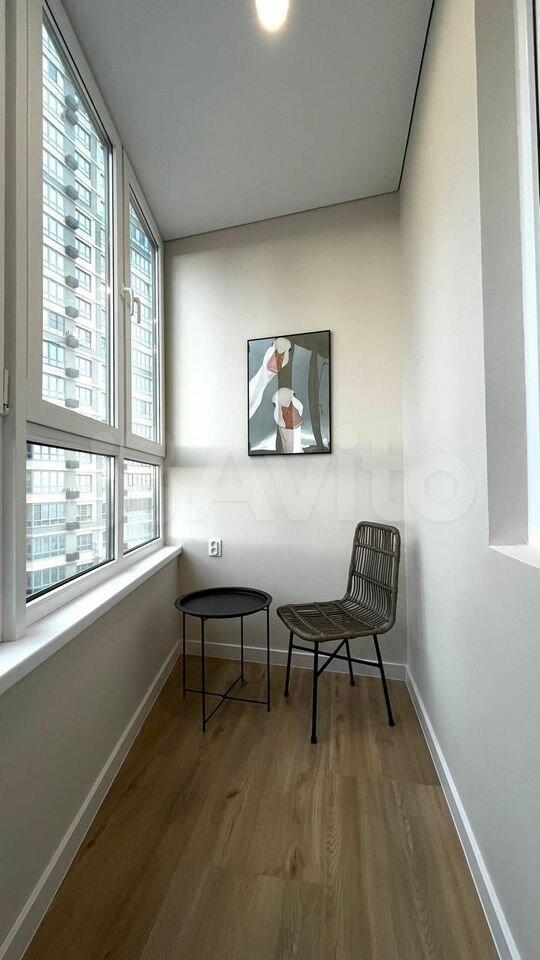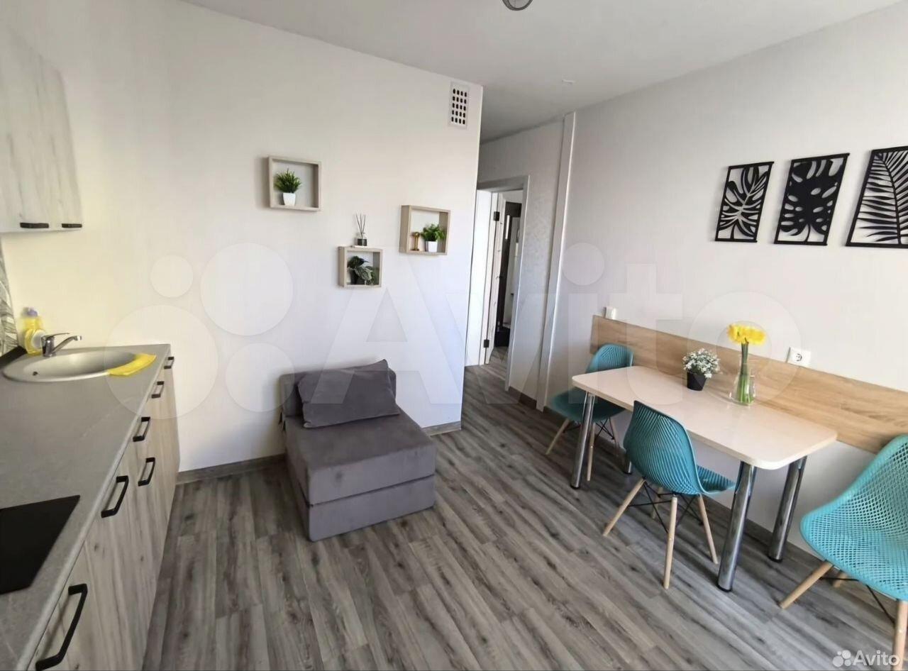 Есть вся необходимая мебель и бытовая техника для комфортного проживания. Лоджия с витражным остеклением совмещена с кухней, прекрасный вид на город. Теплый пол, турник и шторы блэкаут.