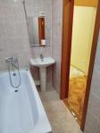 - Санузел оснащен ванной, полотенцесушителем, тумбой с раковиной и зеркалом, стиральной машиной.
