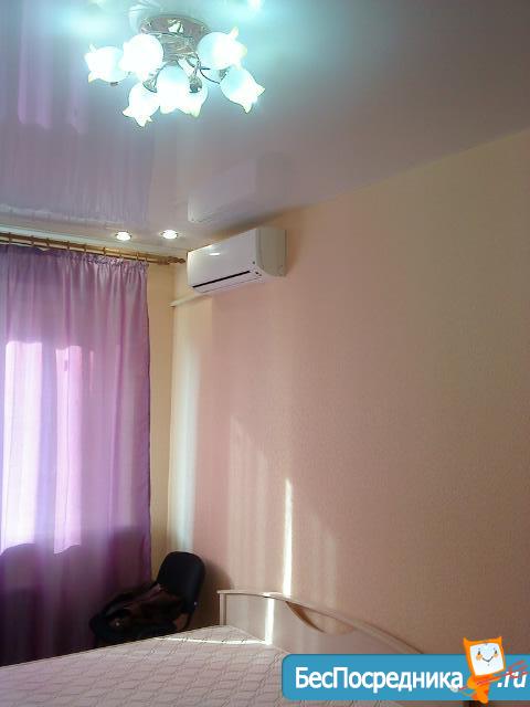 Квартира отремонтирована, полностью готова к проживанию, имеется кухня, электрическая плита, кухонный стол, стулья, микроволновая печь, холодильник, сплит система, диван, комод, телевизор, прихожая. Имеется большая кладовая. Балкон застеклен, с подвесными потолками, кафель.