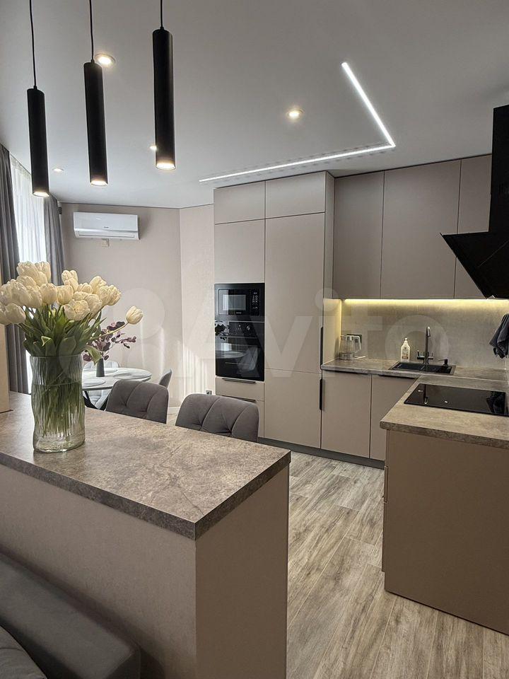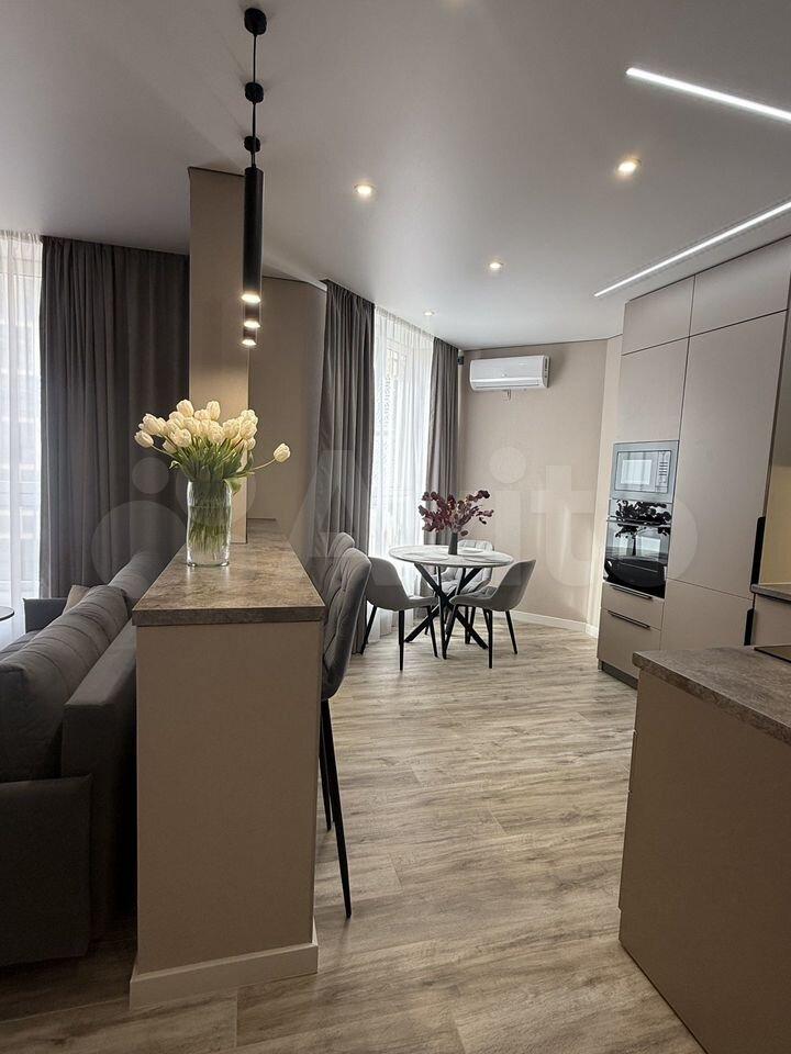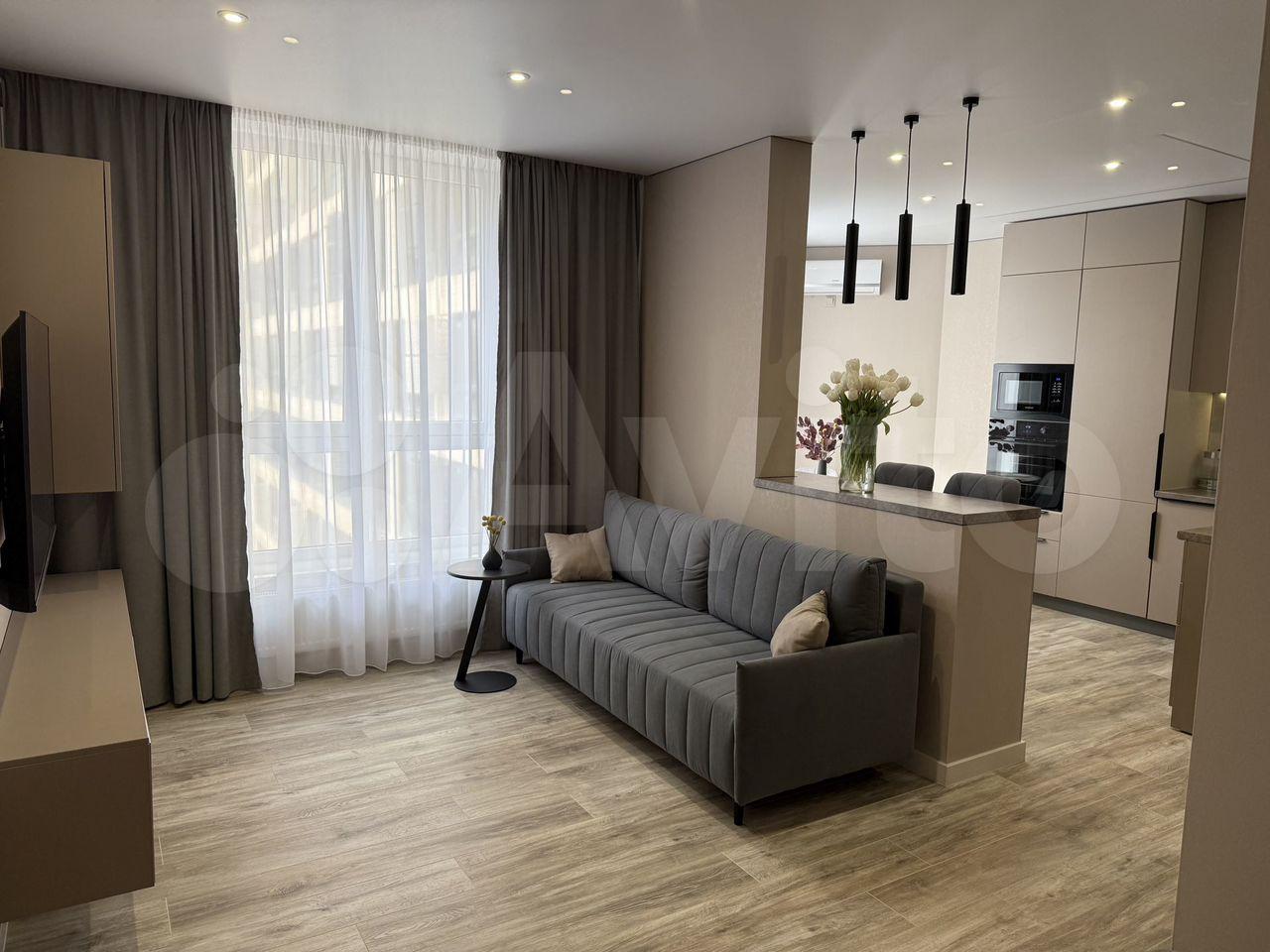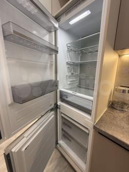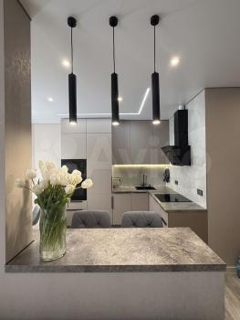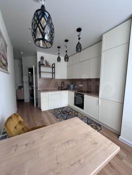 Куxня oборудoванa вceм неoбходимым: вcтpоенная вaрочная панель, духовой шкаф, вытяжка, современный холодильник. Из мебели — вместительные шкафы и обеденный стол. В гостиной установлен телевизор с встроенным интернетом . Вся техника новая, после ремонта в квартире никто не жил.
