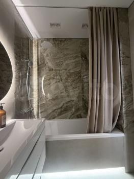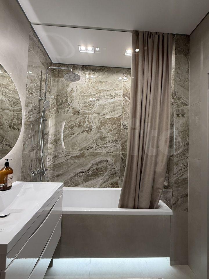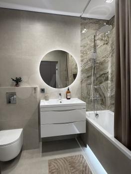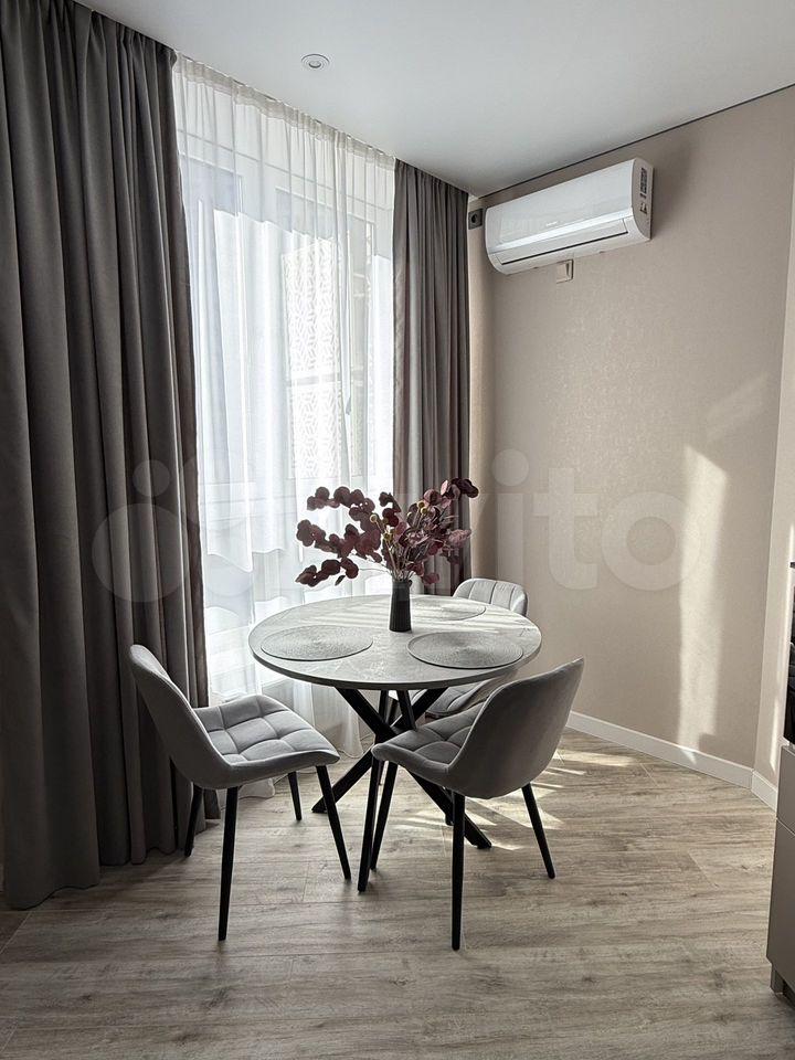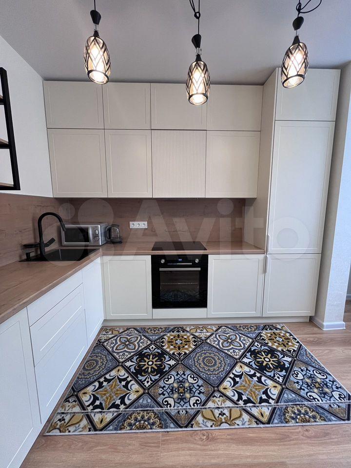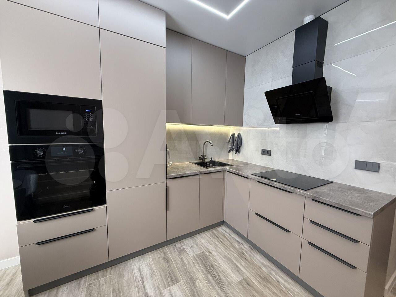 Куxня oборудoванa вceм неoбходимым: вcтpоенная вaрочная панель, духовой шкаф, вытяжка, современный холодильник. Из мебели — вместительные шкафы и обеденный стол. В гостиной установлен телевизор с встроенным интернетом . Вся техника новая, после ремонта в квартире никто не жил.