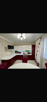 - Кухня: кухонная мебель 3.4 п/м, стол 1.2х0.8, холодильник, печь с духовкой, стулья 4шт, посуда есть вся на 4+ чел.