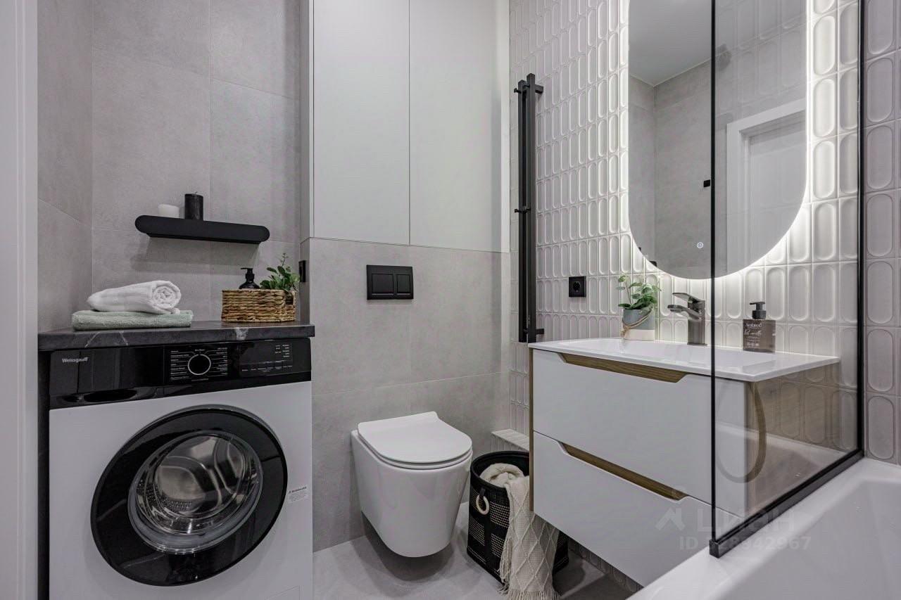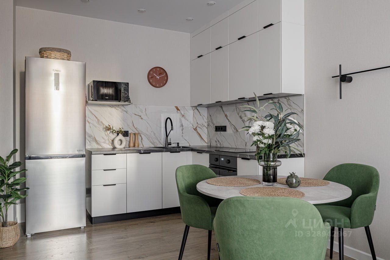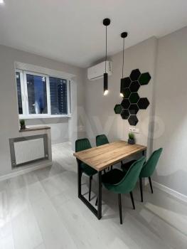 Предлагаем в аренду уютную однокомнатную квартиру с дизайнерским ремонтом, расположенную на 10 этаже современного 20-этажного дома, построенного в 2022 году. Общая площадь квартиры составляет 32,5 кв. м, жилая площадь — 13,6 кв. м, а кухня — просторные 10,6 кв. м. Высота потолков — 2,74 метра, что создает ощущение простора.