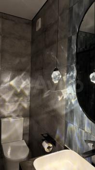Совмещенный санузел оформлен в современном стиле.