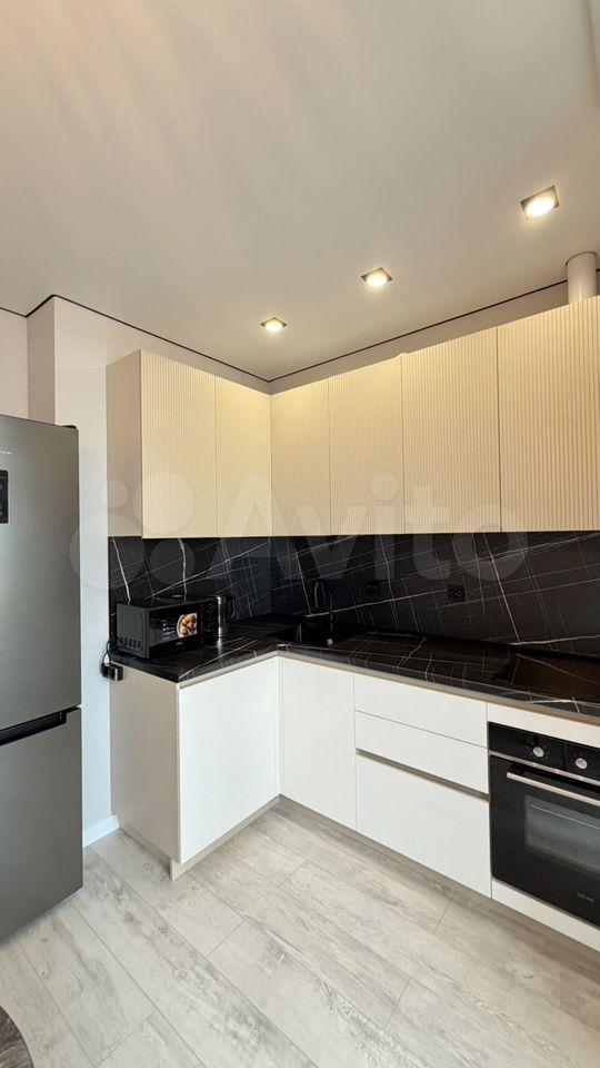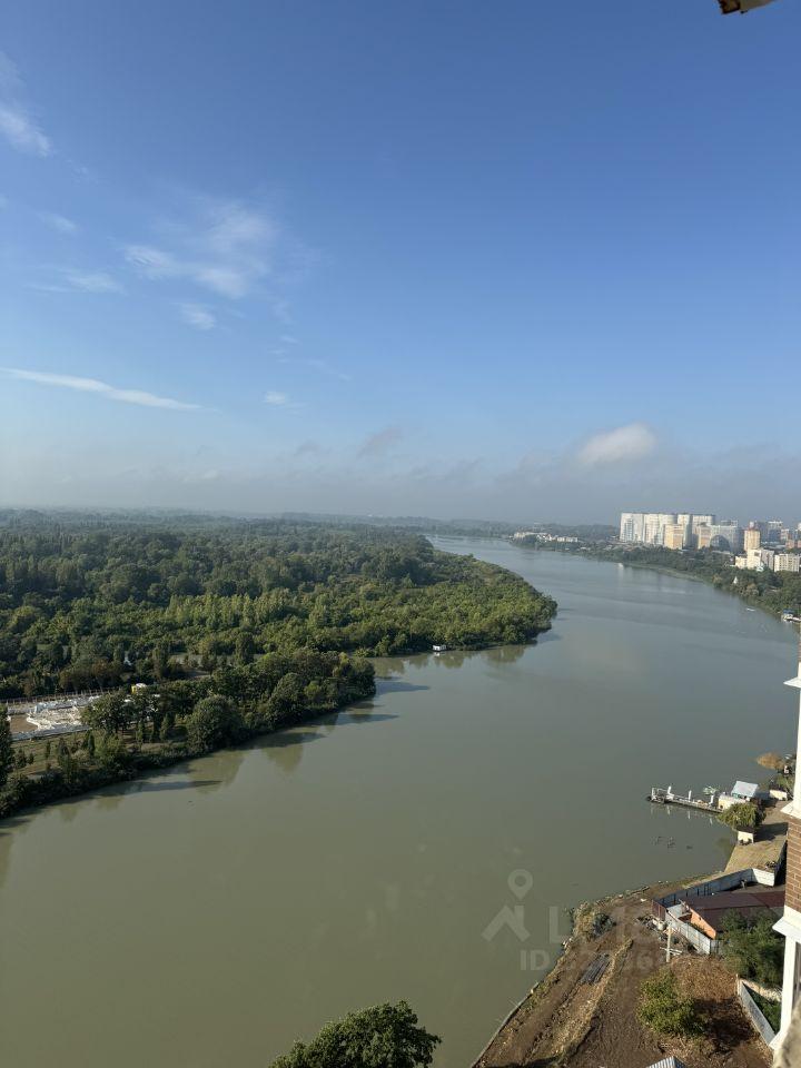 Кухня площадью 17 м2 оборудована всем необходимым: бытовая техника, включая холодильник и стиральную машину. Из окон открывается потрясающий вид на реку и городской пейзаж.