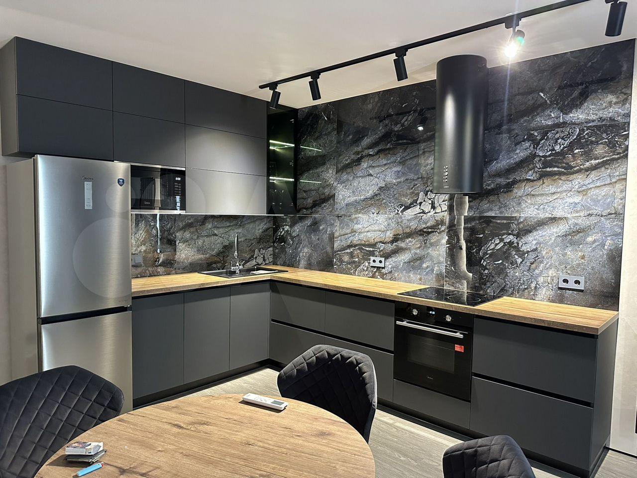 В квартире выполнен дизайнерский ремонт. Комнаты изолированные, что обеспечивает комфорт и приватность. Просторная кухня площадью 15 м² оснащена современной техникой, включая холодильник и духовые шкафы. Встроенные шкафы обеспечивают достаточно места для хранения.