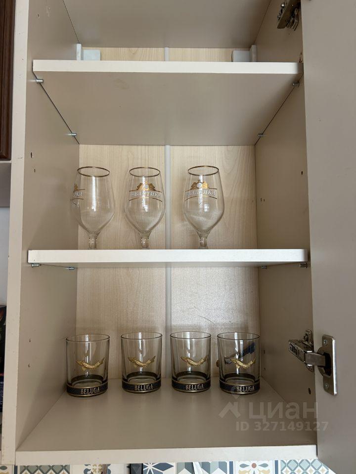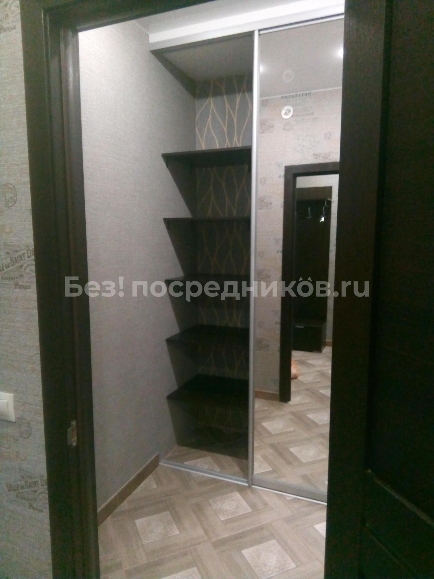 В квартире есть, сковородки, кастрюли, посуда первой необходимости. Вытяжка на кухне. В спальне два больших шкафа, диван 2-х спальный и кровать односпальная.