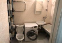 санузел - совмещённый, мебель - кухня, хранение одежды, спальные места, кондиционер, холодильник, плита, микроволновка, стиральная машина, телевизор.