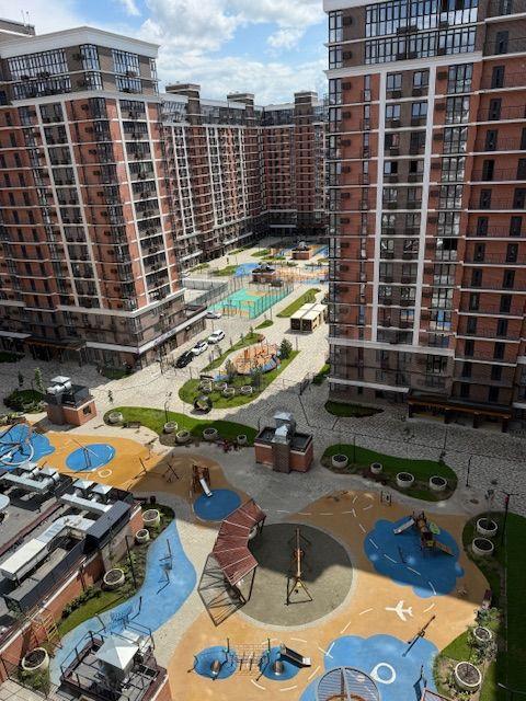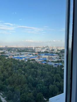 Окна выходят во двор. С лоджии открывается красивый панорамный вид. Тихая, уютная, большая придомовая территория, детские площадки. В доме консьерж. Много парковочных мест (шлагбаумы).