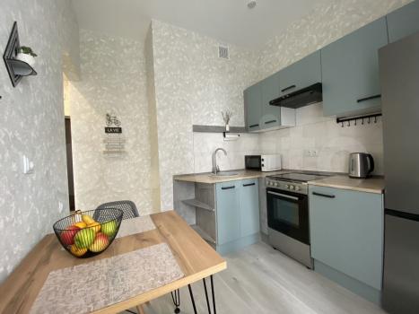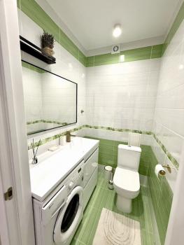 Квaртира в новом доме с новым ремонтом, мебелью и бытовой техникой, готовая для проживания, две жилые комнаты, кухня, два балкона, раздельные ванная и сан.узел.