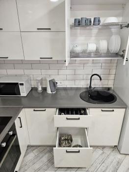 Есть вся необходимая для комфортного проживания мебель: кухонный гарнитур, стол, стулья, 2 больших шкафа-купе, комод, буфет на балконе, большой диван, двухспальная кровать, встроенная потолочная сушилка для белья на балконе.