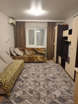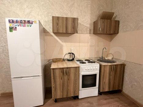 Общая площадь 36 м2. Кухня 10 м2. Санузел совмещенный. Балкон застеклен. Печь электрическая. Сплит установлен в спальне. В кухне есть гарнитур и холодильник. В комнате имеется кровать, кресло, шкаф и комод. Стиральная машина в ванной комнате.