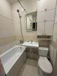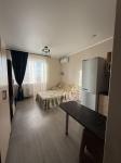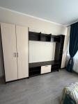 Кухня светлая и функциональная, оснащена всем необходимым для комфортного приготовления пищи. В гостиной установлен телевизор. Санузел совмещённый, с современной сантехникой.