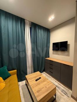 В квартире выполнен дизайнерский ремонт, создающий атмосферу уюта и современности. Просторная кухня оборудована всей необходимой техникой, включая холодильник и плиту. В комнате установлен удобный диван и шкафы для хранения вещей.