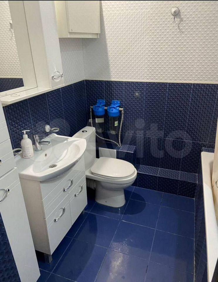Санузел раздельный, выложен кафельной плиткой. Во всех комнатах, прихожей, кухне на полу- ламинат. В туалете установлены фильтры для очистки воды.