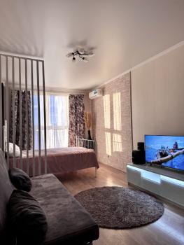 Сдается однокомнатная квартира (Прикубанский район) в районе торгового комплекса "Красная площадь" ЖК "Кремлевские ворота". Площадь - 42,6 кв. м., монолитно-кирпичный жилой дом. Евроремонт! Уютная квартира для тех, кто любит чистоту и комфорт! В квартире полноформатная кухня с бытовой техникой: с электроплитой, вытяжкой, микроволновая печь, полностью вся новая мебель, новая б/т, из окна открывается прекрасный вид. Новый дом. Квартира только после ремонта. Вся мебель новая. Пандусы для инвалидов. Прекрасная детская площадка. Облагороженная придомовая территория. Места для парковки автомобиля. Самый удобный и развивающийся район Краснодара. В ближайшей доступности: поликлиника, 2 школы, ДДУ, университет МВД, военное училище им. Штеменко, военное училище летчиков, Экспоград Юг, торговый комплекс "Красная площадь", Макдоналдс, Магнит, Пятерочка, Табрис, Перекресток, кафе, рестораны, банки, рынок продуктовый, остановки общественного транспорта. Курение только на балконе! Квартира сдается для семейной пары или девочек-студенток аккуратных в быту и поддерживающих чистоту.