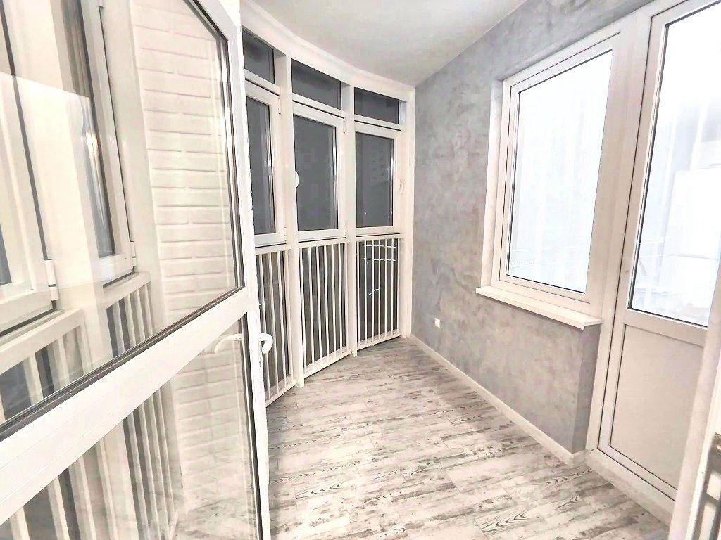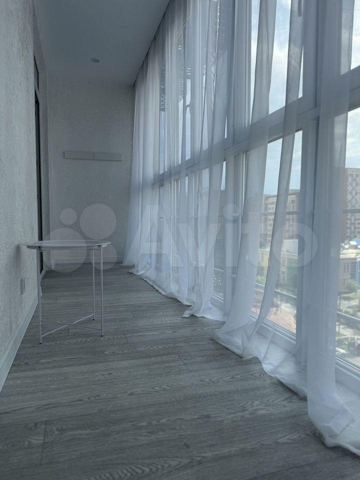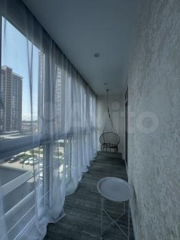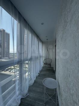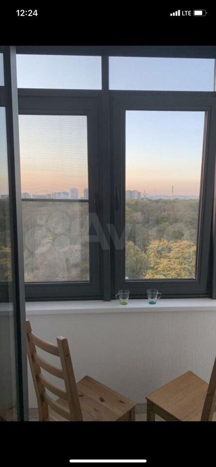 Есть вся необходимая мебель и бытовая техника для комфортного проживания. Лоджия с витражным остеклением совмещена с кухней, прекрасный вид на город. Теплый пол, турник и шторы блэкаут.