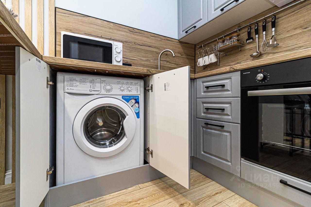 В квартире присутствует кухонный гарнитур, стол, стулья, варочная панель, духовой шкаф, вытяжка, холодильник, чайник, микроволновая печь, стиральная машинка.