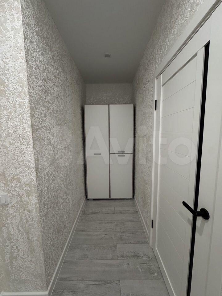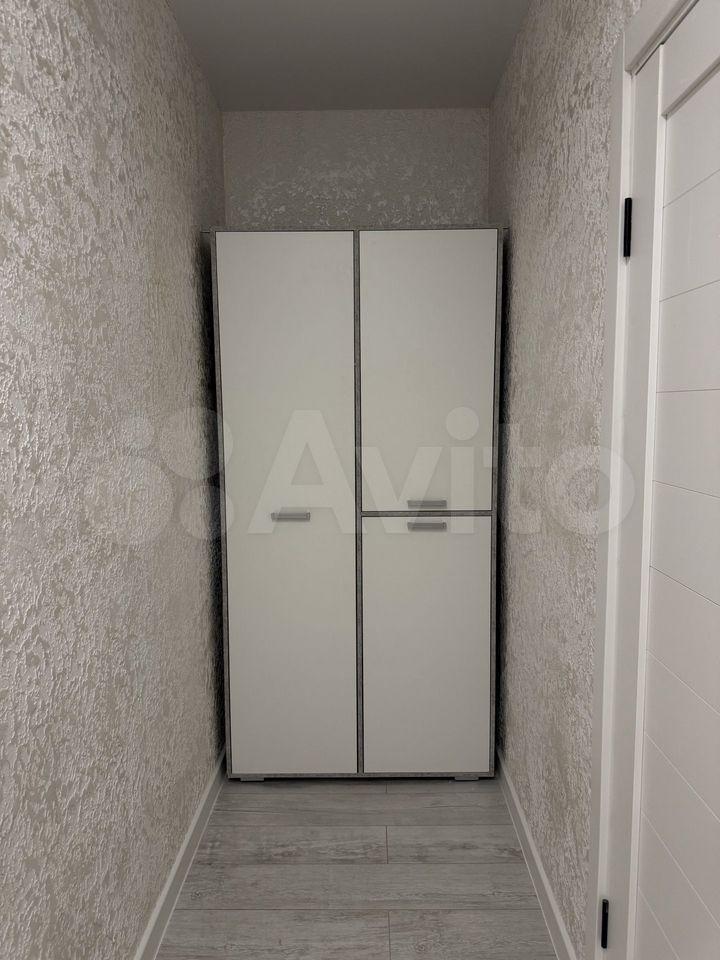 В квартире имеется балкон с видом на двор, где предусмотрена открытая парковка. В прихожей установлены вместительные шкафы для хранения вещей.