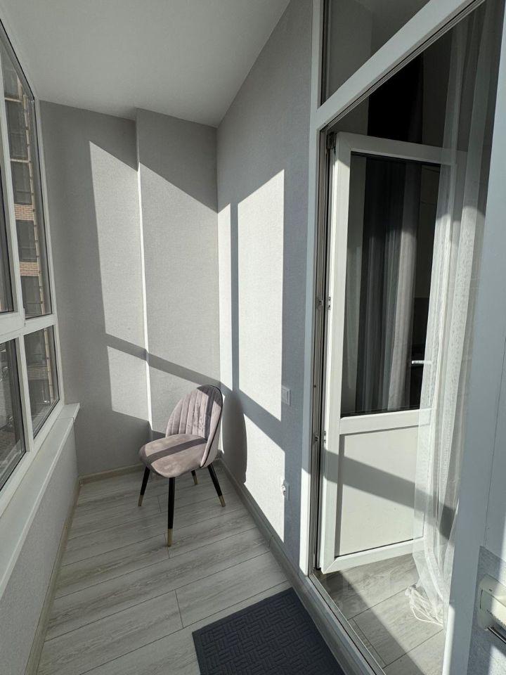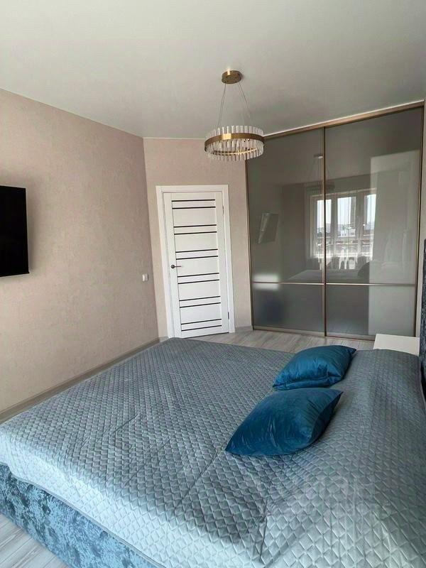 В квартире выполнен свежий ремонт, установлена большая гардеробная. Просторная лоджия с панорамным видом станет отличным местом для отдыха. В комнате установлена современная кровать и телевизор.