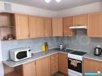 Кухня оборудована всем необходимым: кухонный гарнитур, холодильник, микроволновая печь, чайник, электроплита с духовым шкафом.