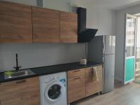 Новый дом и ремонт. Балкон один на кухне. Санузел совмещен и оборудован. Имеется кухонный гарнитур, стиральная машина, холодильник, варочная плита, спальное место на двоих и два кресла раскладных. Можно с детьми и животными.