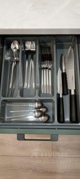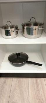 * **Кухня:** Раскладной диван, обеденный стол и 4 стула. Вся техника: холодильник, духовой шкаф, электроплита, вытяжка, микроволновка, чайник. Вся необходимая посуда и кухонная утварь.