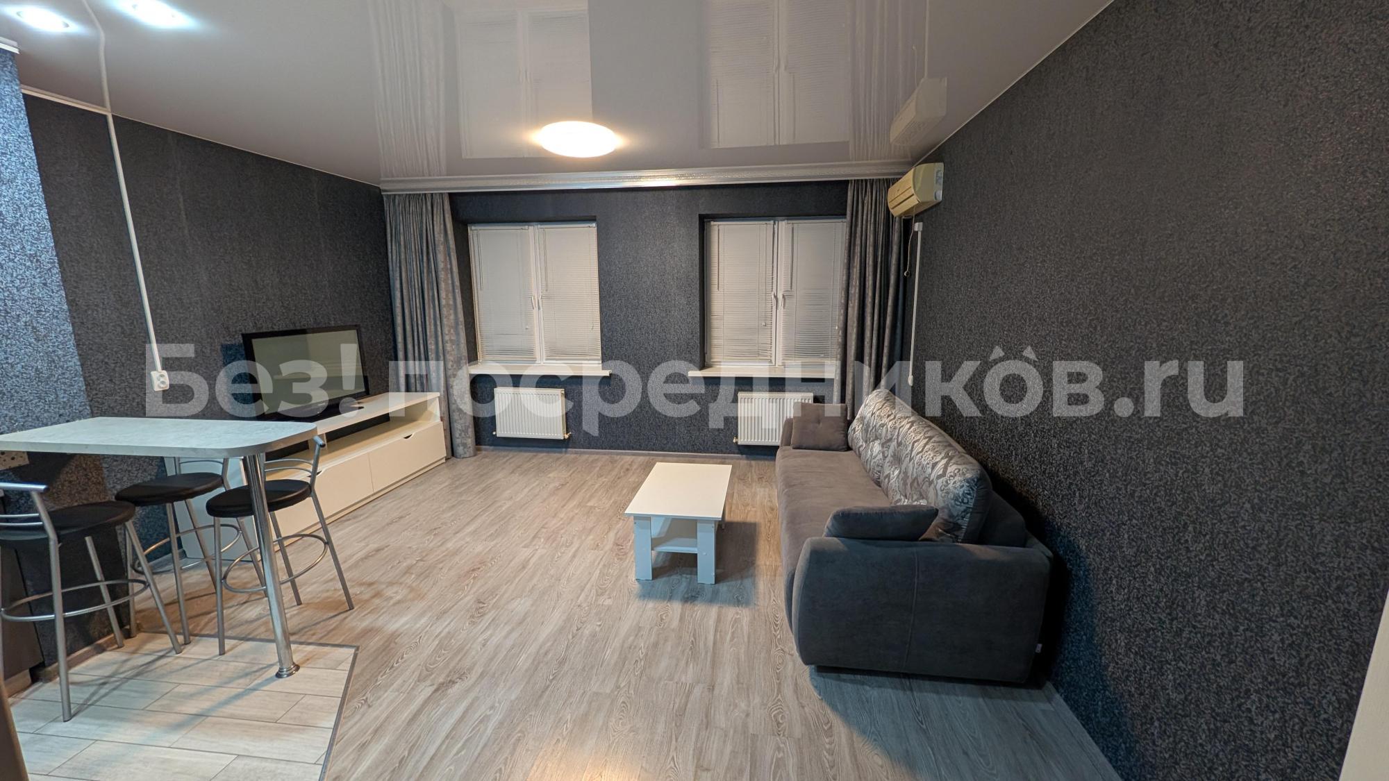 Однокомнатная квартира 48 м2. 15м2 кухня, 18м комната, гардеробная, с/у, бытовая техника, мебель. Цена 22т.р+коммуналка. Торг. Ставропольская, 207/1., 11этаж.