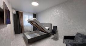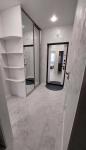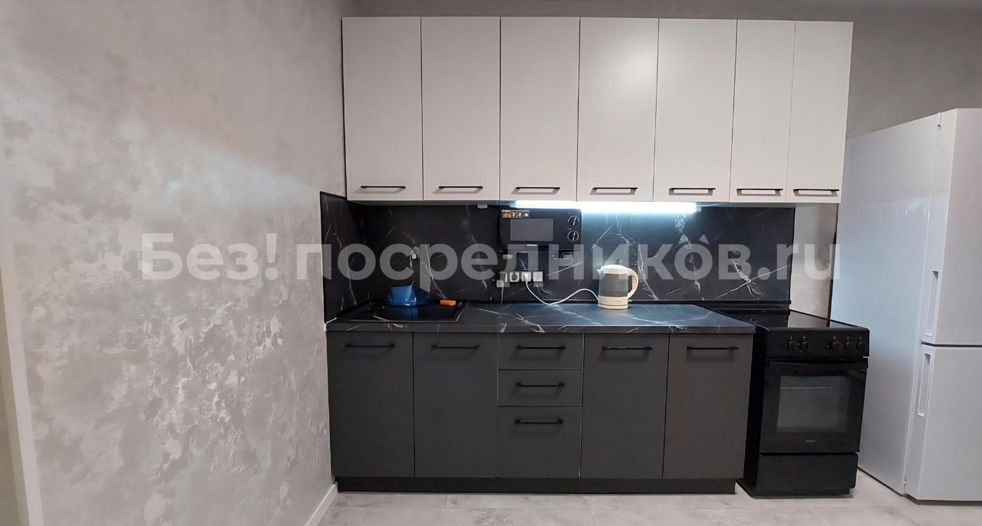 В квартире выполнен дизайнерский ремонт, создающий атмосферу уюта и современности. Просторная кухня оборудована всей необходимой техникой, включая холодильник и плиту. В комнате установлен удобный диван и шкафы для хранения вещей.