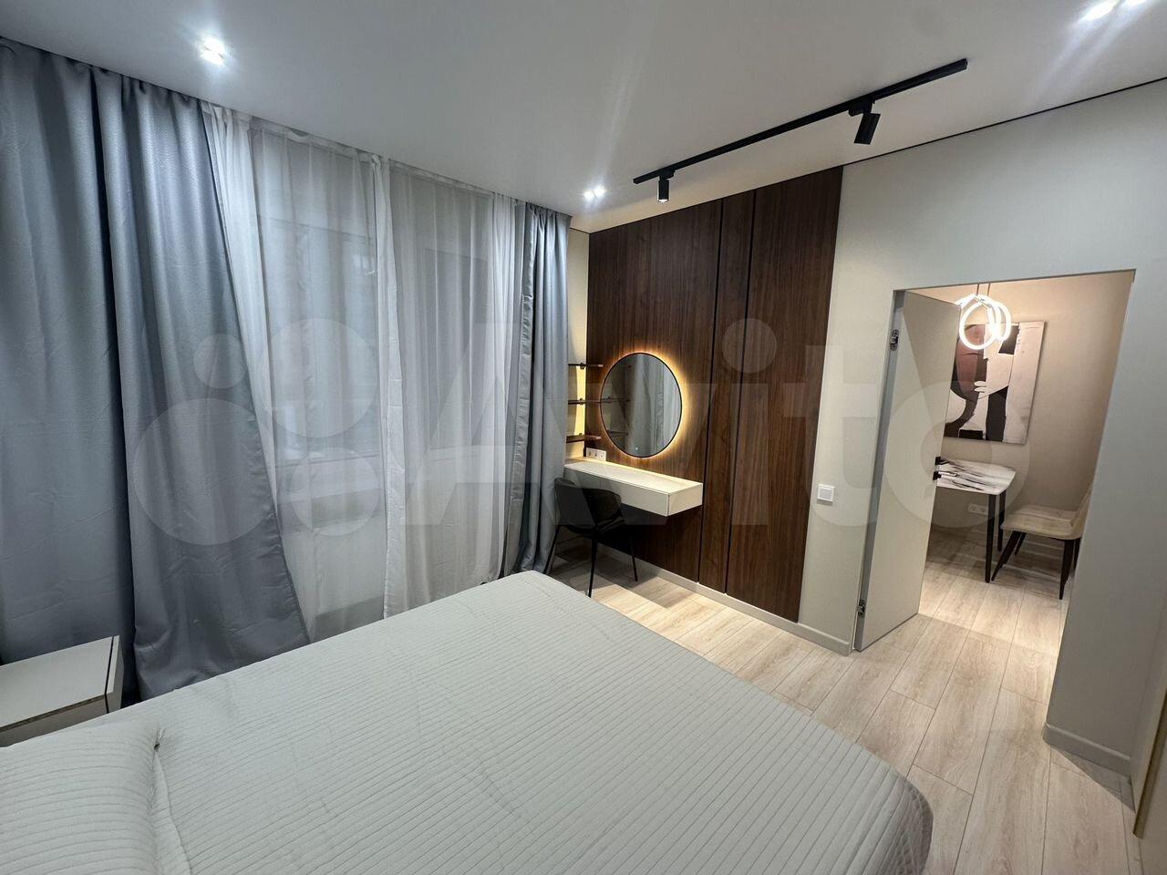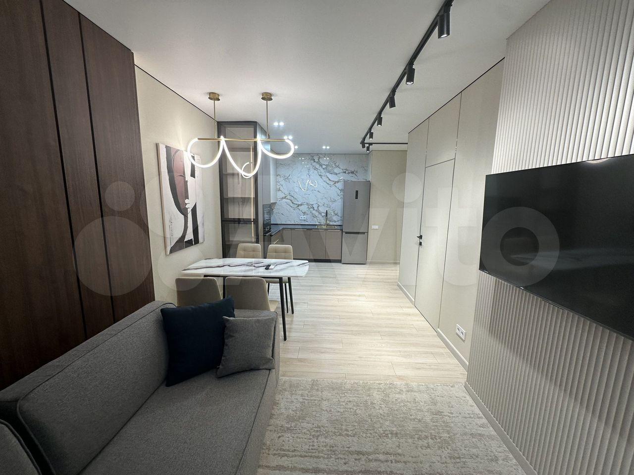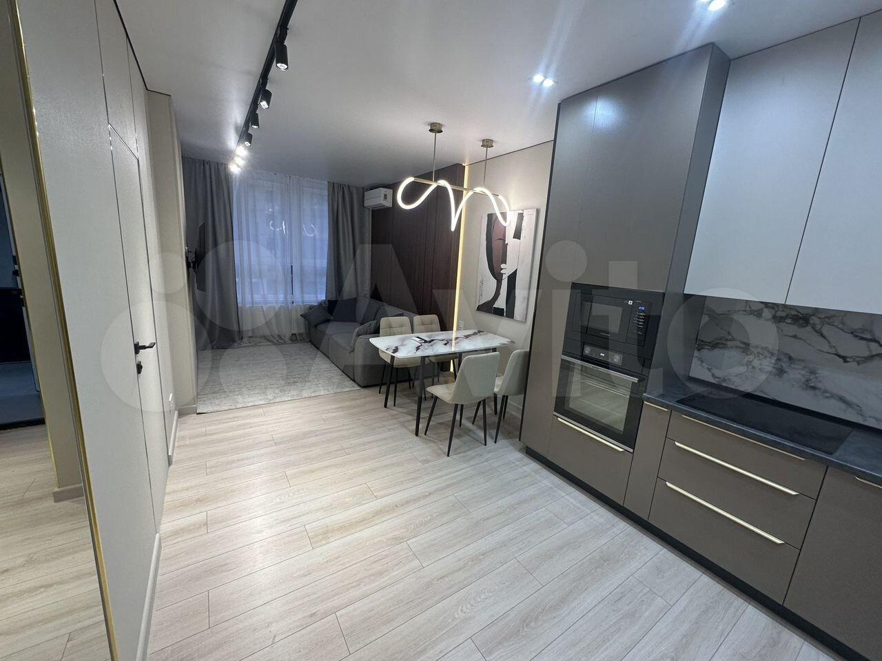 Удобная планировка: Просторная светлая комната, большая кухня-гостиная с барной стойкой, также есть гардеробная для всех ваших вещей.
