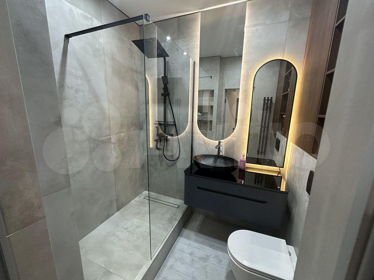 - мебелью (вместительный шкаф-купе и просторная гардеробная с зеркалами в пол, просторная кровать размер 180#200 см , а так же раскладной диван, 5 стульев, мебельный гарнитур на кухне).