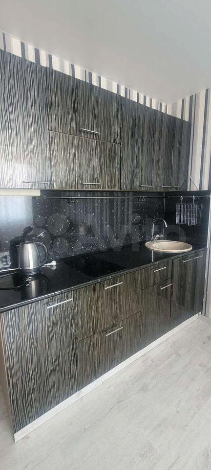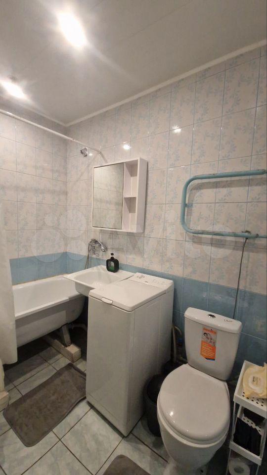 квартира полностью мебелирована. В комнате и на кухне есть вся необходимая мебель. Для комфортного прживания установлена современная техника: кондиционер, холодильник, стиральная машина и телевизор. Санузел совмещённый оборудован ванной. С окон открывается вид на тихий и зелёный двор, что добавляет уюта. В квартире также имеется балкон для отдыха на свежем воздухе.