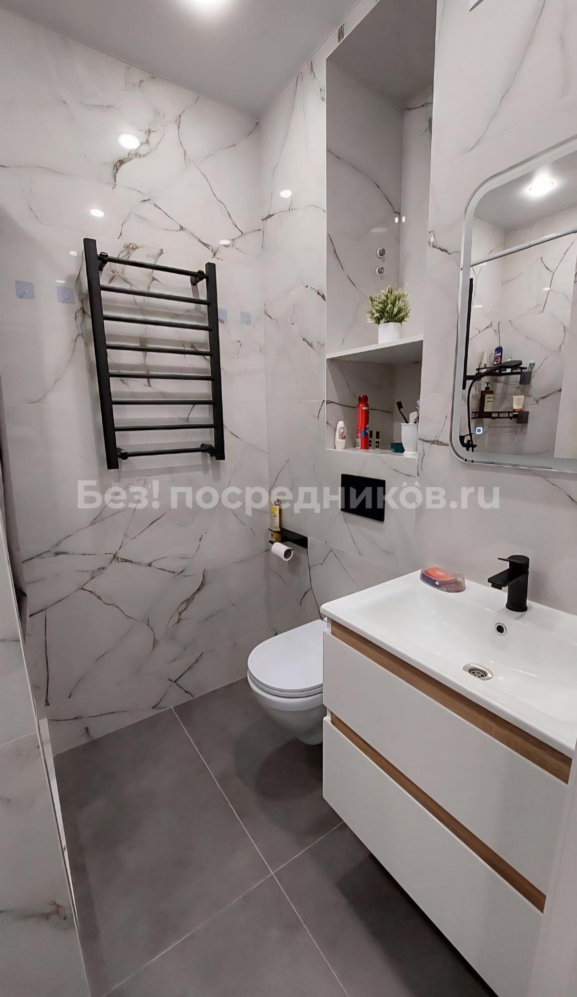 Санузел совмещенный, оформлен качественной плиткой, оснащен современной сантехникой. Из окон открывается приятный вид на город. В квартире также имеется балкон, где можно наслаждаться свежим воздухом.