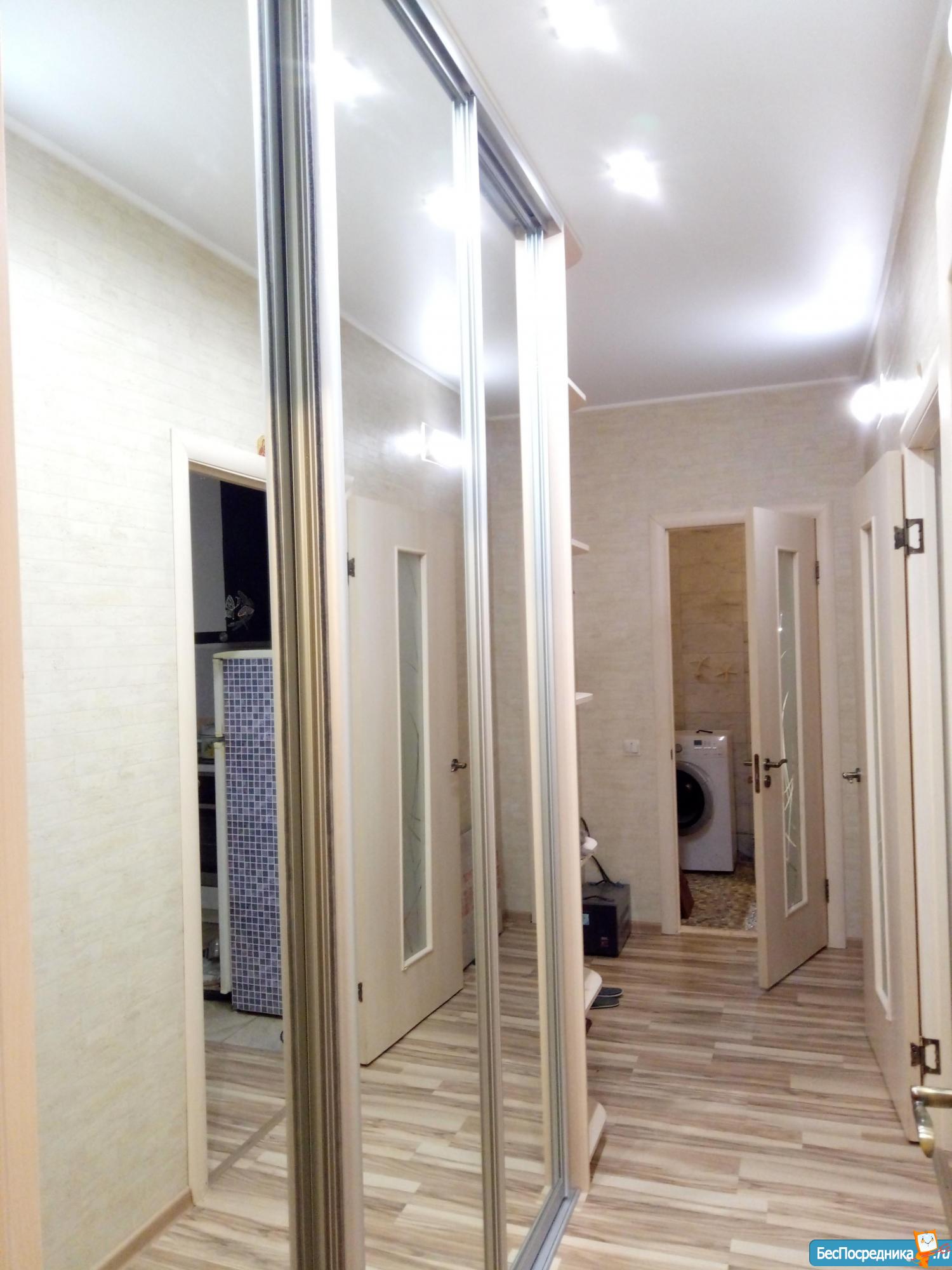 Хранение: два больших вместительных шкафа до потолка с зеркалами.
