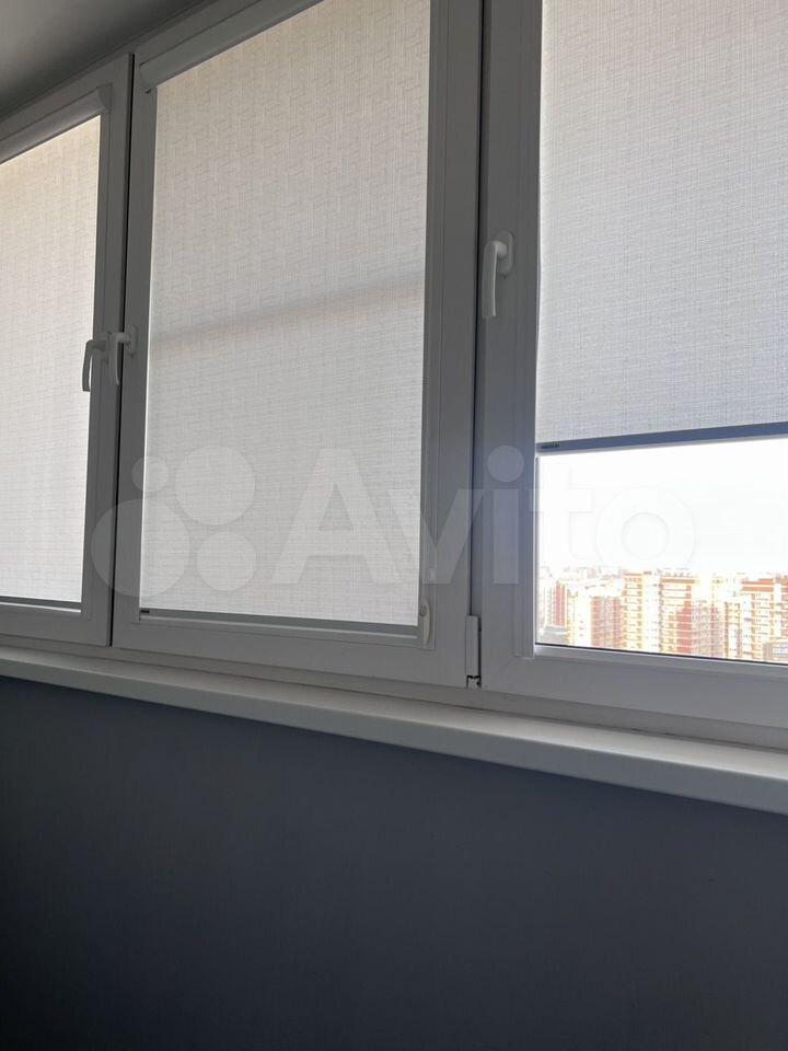Бaлкoн застeклeн, нa всex oкнax pулонныe штоpы.