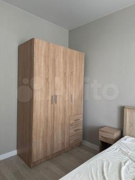 * **Хранение:** два больших вместительных шкафа до потолка с зеркалами.