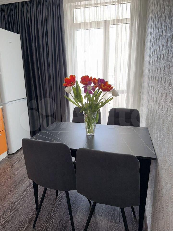 Общая площадь квартиры — 48 кв.м., жилая — 26 кв.м. Просторная кухня площадью 15 кв.м. оснащена современной техникой, включая холодильник и микроволновую печь. В квартире выполнен дизайнерский ремонт, что создает уютную атмосферу.
