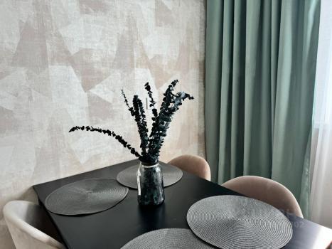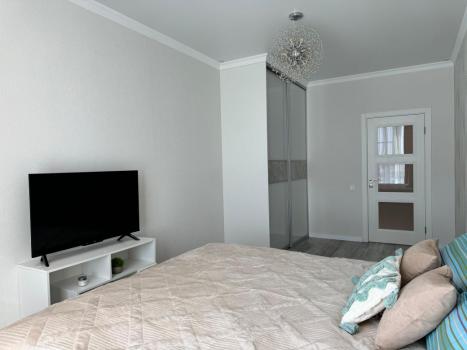 Квартира с большими комнатами, удобной планировкой, со шкаф-купе, сплит-системами и телевизорами в каждой комнате. Есть вся необходимая мебель и бытовая техника (электрическая плита, холодильник, стиральная машина, посудомоечная машина, духовка, микроволновка, гладилка, утюг, чайник, три телевизора).