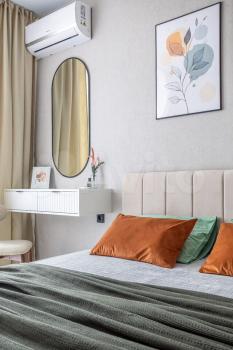 - Сплит-системы в первой комнате и на кухне, во второй комнате установлен кондиционер