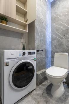 санузел - совмещённый, мебель - кухня, хранение одежды, спальные места, кондиционер, холодильник, плита, микроволновка, стиральная машина, посудомоечная машина, телевизор.