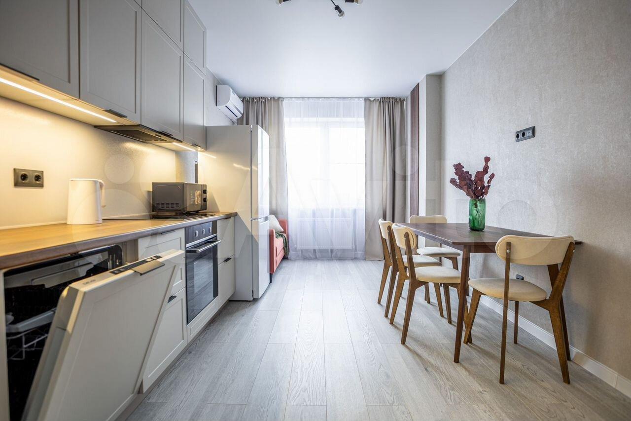 В квартире выполнен дизайнерский ремонт. Комнаты изолированные, что обеспечивает комфорт и приватность. Просторная кухня площадью 15 м² оснащена современной техникой, включая холодильник и духовые шкафы. Встроенные шкафы обеспечивают достаточно места для хранения.