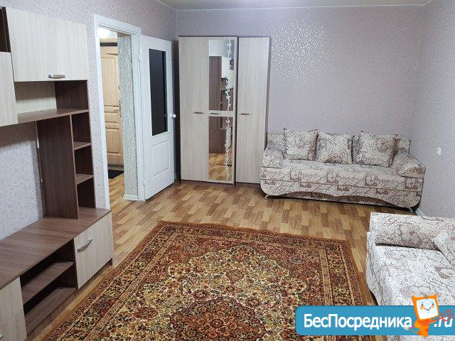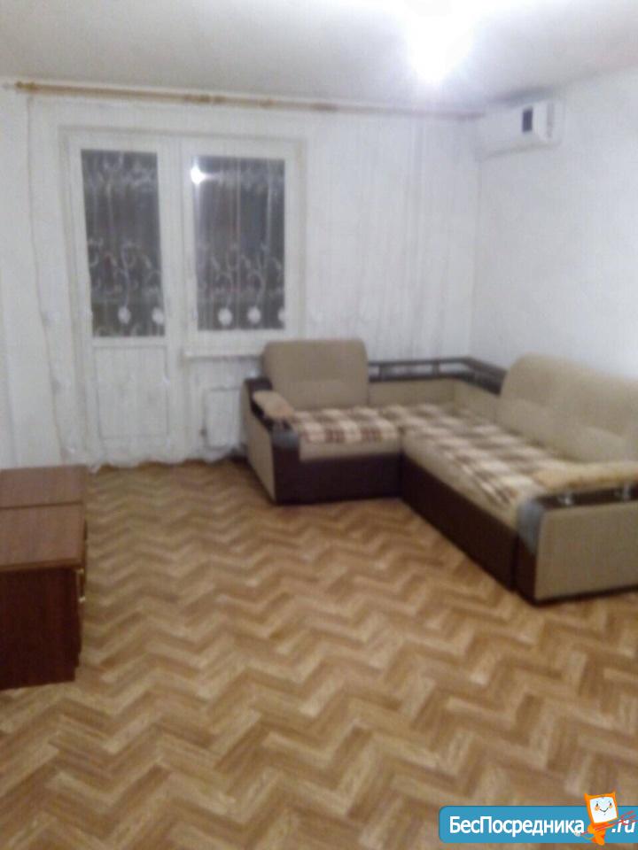 Сдаю на длительный срок 1-ком. квартиру. Есть все необходимое для жизни: кухонный гарнитур, столы и стулья, холодильник, стиральная машина, кондиционер, диваны, шкафы, чайник и прочие элементы обихода. Балкон с остеклением, большой и просторный с красивым видом на город. Вся мебель новая, квартира после ремонта. В общем, заходи и живи! Магазин Магнит в шаге от подъезда, ТСЖ в соседнем доме, остановка в шаговой доступности, пара детсадов и школ, недалеко большой стадион для любителей спорта и парк для любителей прогулок.
