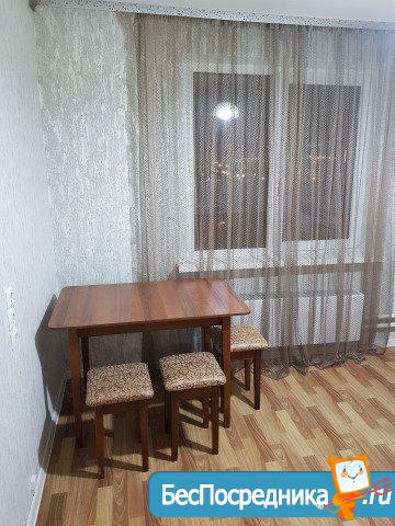 Сдаю на длительный срок 1-ком. квартиру. Есть все необходимое для жизни: кухонный гарнитур, столы и стулья, холодильник, стиралка, диван, шкаф, чайник и прочие элементы обихода. Балкон с остеклением, большой и просторный с красивым видом на город. В общем, заходи и живи! Магазин Магнит в двух шагах, ТСЖ в соседнем доме, остановка в шаговой доступности, пара детсадов и школ, поблизости большой стадион для любителей спорта и парк для любителей прогулок.