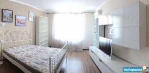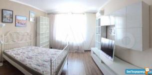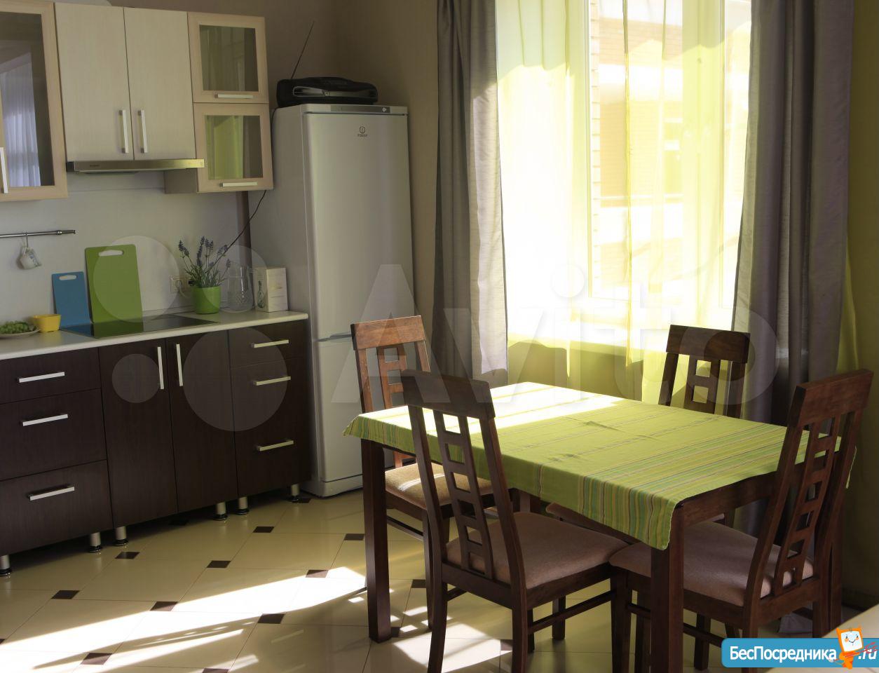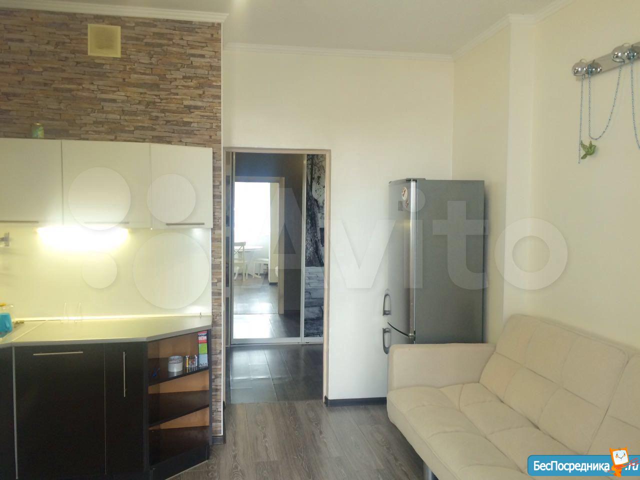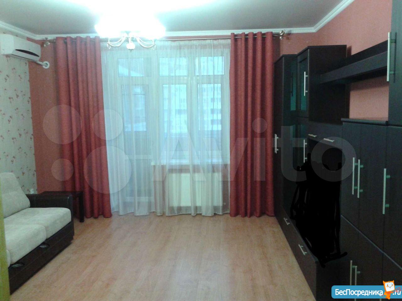 Квартира сдается на длительный срок. Новый элитный дом с развитой инфраструктурой. Внутри самого комплекса есть практически все: магазины, пекарни, детский бассейн, шикарная площадка, салоны и.т.д. В квартире есть все: мебель, бытовая техника. Квартира чистая, в хорошем состоянии. Комната 21м2, кухня 14 м2. В кухне мягкий уголок со спальным местом.