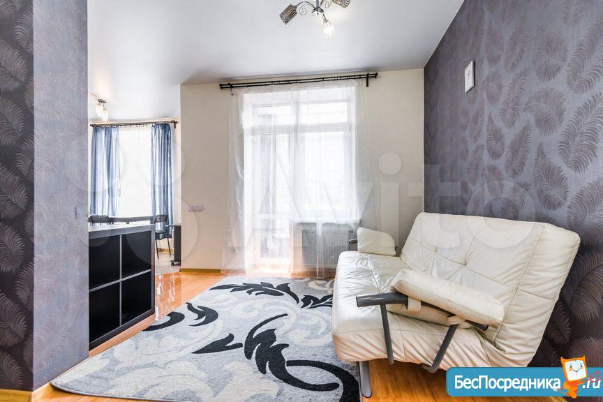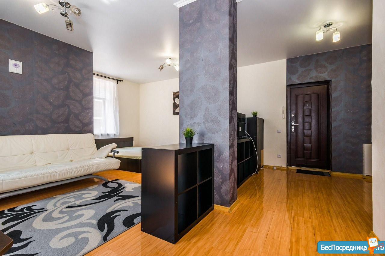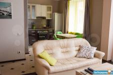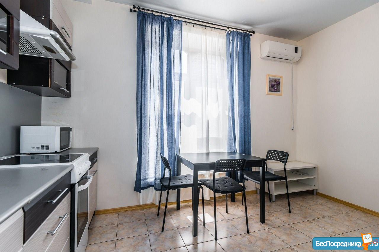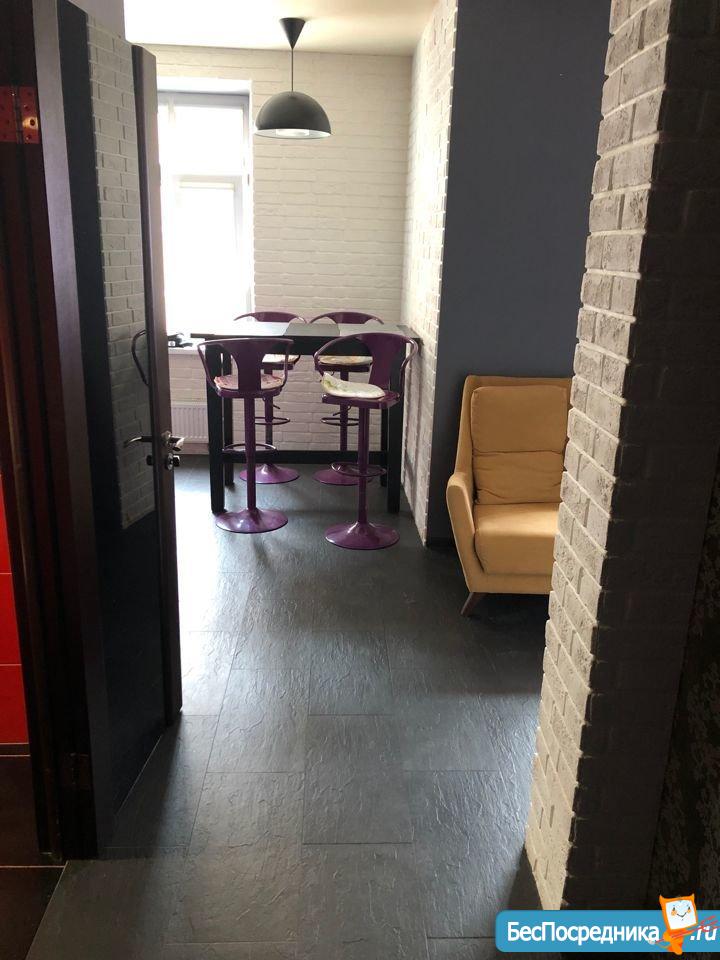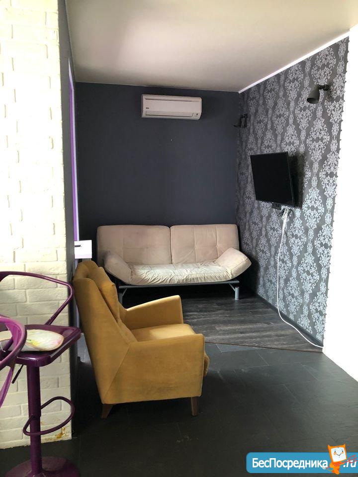 Сдам квартиру-студию с ремонтом, мебелью, бытовой техникой, общая площадь 55 кв.м. Дом располагается в элитном районе. Окна квартиры выходят во двор с видом на красивую детскую площадку (большой корабль и замок).