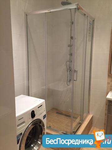В ванной - душевая кабина, автоматическая защита от протечек воды, стиральная машинка-автомат.